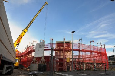 Sobald die Holzkonstruktion − das tragende Element der Mobilitätsstation − steht, können die Fenster eingebaut und die Außenhaut des Gebäudes geschlossen werden. Die Fassade wird im Erdgeschoss durch eine Holzverkleidung und im Obergeschoss durch eine Glasfront gestaltet. Das Flachdach wird begrünt. Sobald das Äußere steht, geht es mit dem Innenausbau weiter. Dazu gehören die Verlegung des Estrichs und des Gussasphalts, die Trockenbauarbeiten und die Rohinstallation für die Elektro- und Haustechnik. Das fertige Gebäude wird zirka 60 Meter lang und 18 Meter breit sein auf zwei Etagen rund 1700 Quadratmeter Platz bieten.