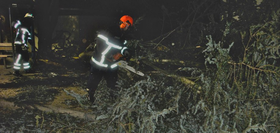 Am Sonntagabend, kurz vor 20 Uhr, mussten sich die Kräfte des Löschbezirks Nord etwa 45 Minuten lang um lose Dachteile in der Schlesienstraße in Winzenheim kümmern. Gegen Mitternacht rückten die Einsatzkräfte des Löschbezirks Süd wegen mehreren größeren abgebrochenen Ästen eines Baumes in den Weyroth aus. Die Äste lagen auf dem Gehweg und teilweise auf der Fahrbahn. Mit einer Motorkettensäge wurde der Baum zerkleinert und das Schnittgut in den Garten des Anwesens verbracht. Nach etwa 30 Minuten waren Gehweg und Fahrbahn wieder geräumt. Gegen 5 Uhr rückte der Löschbezirk Nord zum Schützenhaus auf die L 236 aus, um dort einen abgebrochenen Ast von der Straße zu ziehen. Nach wenigen Minuten konnte die Einsatzstelle wieder verlassen werden.
