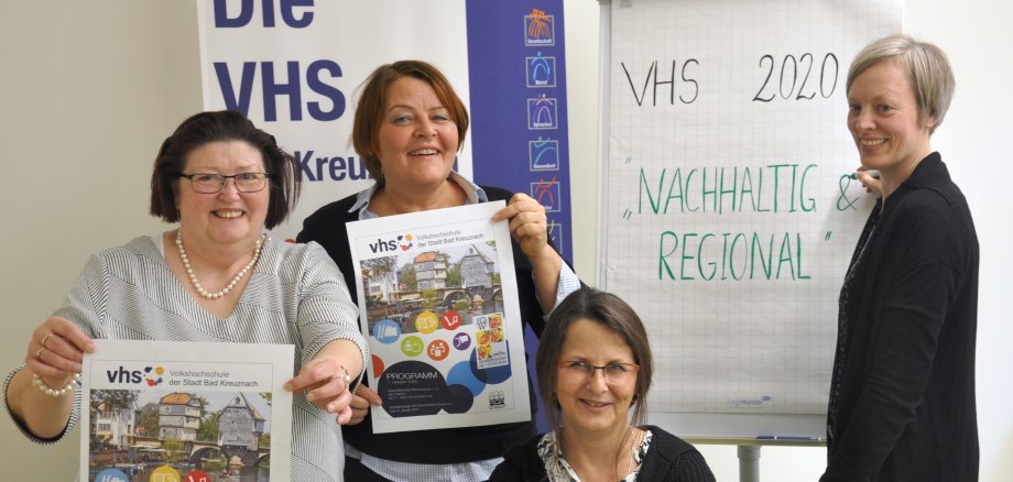 Foto: Das Team der VHS Bad Kreuznach hat wieder ein abwechslungsreiches Programm auf die Beine gestellt, v. l.: Geschäftsführerin Erika Roggendorf, Leiterin Grit Gigga und die Mitarbeiterinnen Angelika Jost und Dorothee Mennerich.