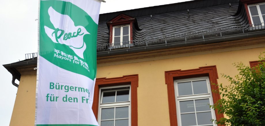Foto: Am 8. Juli 2019 wehte zum ersten Mal die "Mayors for Peace"-Flagge vor dem Bad Kreuznacher Stadthaus.