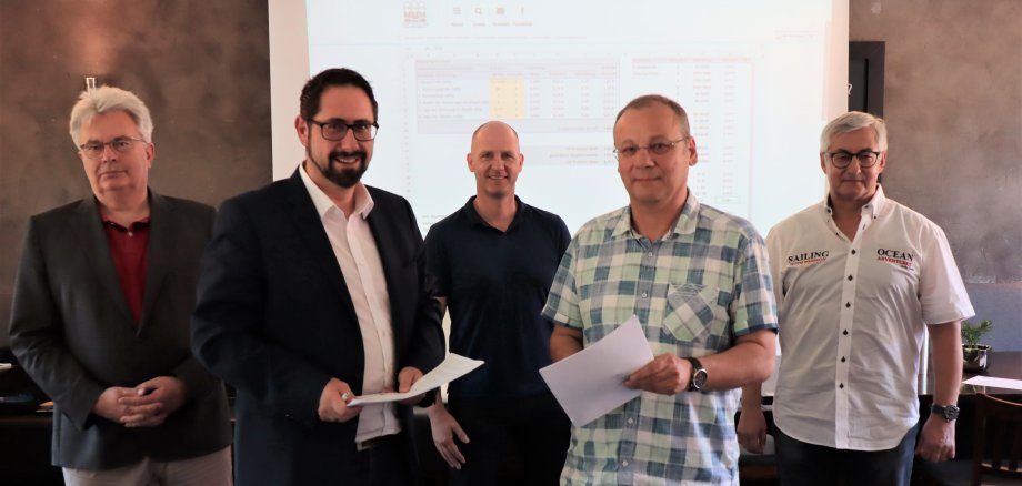 Foto: Freuen sich über den neuen Mietspiegel für die Stadt, v. l.: Dr. Michael Frank (Vorsitzender Haus & Grund Bad Kreuznach), Michael Fluhr (Leiter Amt für Wirtschaftsförderung und Liegenschaften), Beigeordneter Markus Schlosser, Uwe Neumann (Sachbearbeiter Mietspiegel) und Paul Trauth (Vertreter Miet- und Pachtverein Bad Kreuznach).