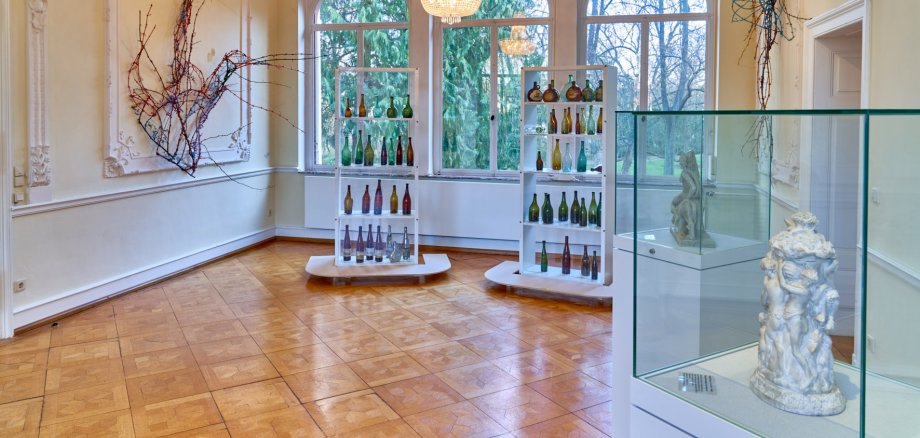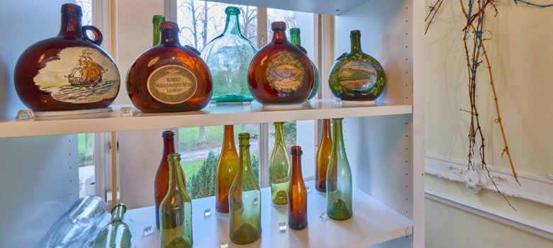Fotos: Alte Weinflaschen in unterschiedlicher Farbe, Größe und Form zeigt die aktuelle Sonderausstellung im Museum Schlosspark. Text und Fotos: Museum Schlosspark