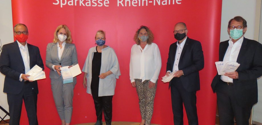Foto: OB Dr. Heike Kaster-Meurer (zweite von links) nahm mit den Landrätinnen die Masken von der Sparkasse in Empfang.