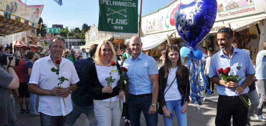 Archivfoto (2019): Da war Corona noch kein Thema: Schaustellerverband-Vorsitzender Ralf Leonhard, OB Dr. Heike Kaster-Meurer, "Jahrmarktsbürgermeister" Markus Schlosser und Marktmeister Mathias Weyand bei der Eröffnung des Kreuznacher Jahrmarkts 2019.