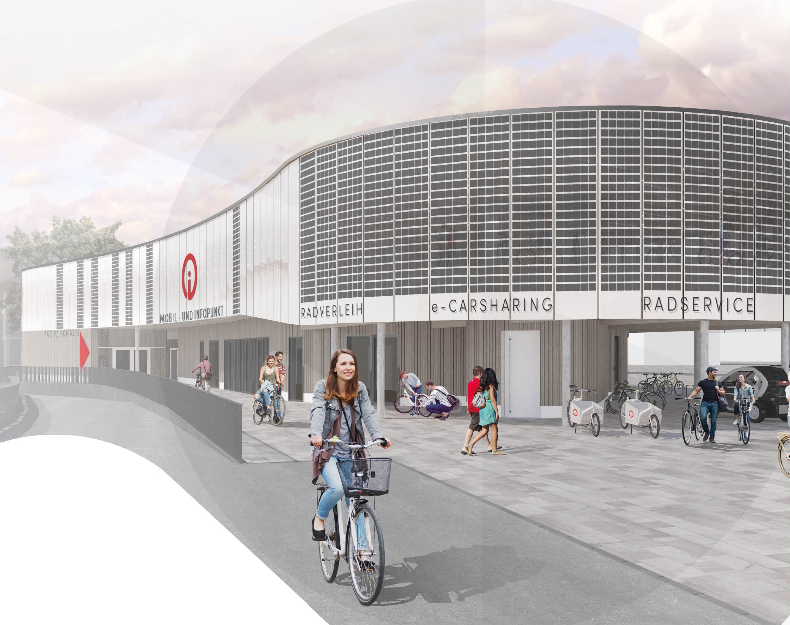 Radparkhaus und Mobilitässervices unter einem DachNeuer Mobil- und Infopunkt am Bahnhof geht am 1. Dezember in Betrieb