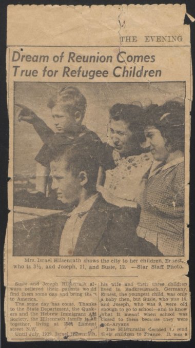 Die abenteuerliche Flucht führte weiter mit dem Zug von Vichy nach Marseille und durch die Pyrenäen nach Lissabon. Vater Isreal hatte Schiffs-Tickets geschickt. Mit siebzig weiteren Kinder bestiegen Susi und Joseph die Serpa Pinto. Sie waren zwei Wochen auf See bis New York unterwegs. Von dort fuhren sie nach Washington zu ihrem Vater. Susi Hilsenrath studierte bei Rabbi Jakobs, der mit seiner Familie aus Bad Kreuznach emigrierte und in ihrer Nähe lebte. 1948 heiratete sie Irving Warsinger (1924-2005). Die Mutter von drei Töchtern arbeitete als Lehrerin und widmet sich bis heute der Aufklärung der Menschen über den Holocaust. Ihre Archiv-Sammlung schenkte sie 1995 dem Holocaust Memorial Museum der Vereinigten Staaten.