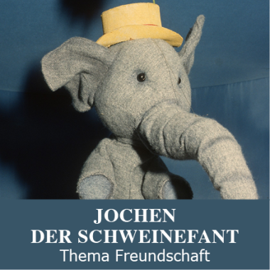 Handpuppenspiel zum Thema Freundschaft und individuelle Stärken. Der kleine liebenswerte Jochen ist das Ergebnis der großen Liebe einer Schweine-Dame zu einem Zirkuselefanten. Jochen ist also ein Schweine-Fant (Foto links). Während der Geschichte wird der kleine Jochen schließlich vom Außenseiter zum Helden der Bauernhofgemeinschaft. Der freundliche Esel Friedhelm, der verschlafene Hahn, Katze Friederike und die Ferkelgeschwister lassen Jochen hochleben.