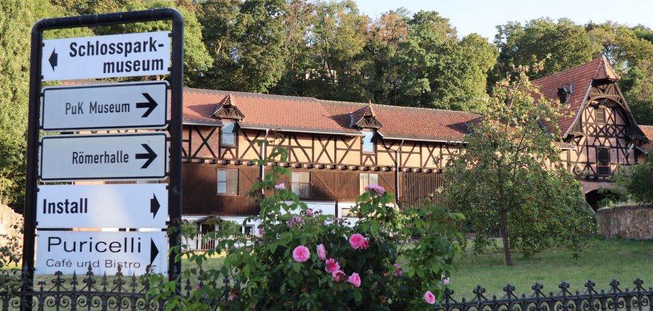 Foto: Ein Schild weist im KulturViertel Bad Kreuznach auf die einzelnen Museen hin.