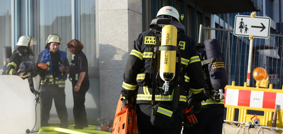Archivfoto (2019): Auch das gehört zu den vielfältigen Aufgaben der Freiwilligen Feuerwehr: eine Brandübung am alten Volksbank-Gebäude im vergangenen Jahr.