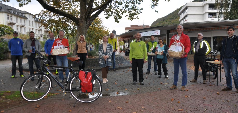 Foto: Preisträger des Stadtradelns 2020, Sponsoren und Mitglieder des städtischen Organisationsteams mit Oberbürgermeisterin Dr. Heike Kaster-Meurer.
