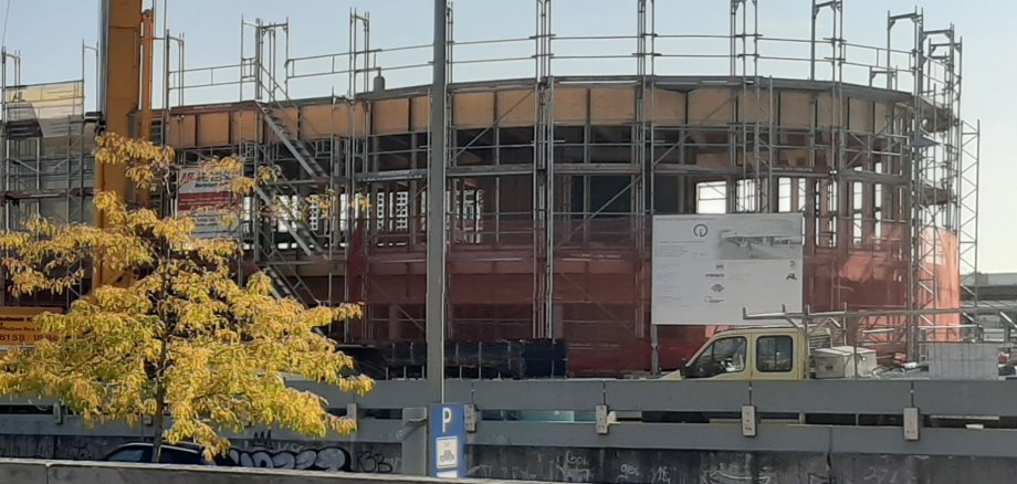 Foto: Der neue Mobil- und Infopunkt nimmt sichtbar an Gestalt an (Stand: 14. September 2020).