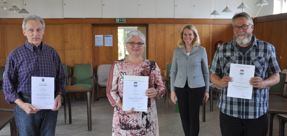 Foto von links : Günter Adelseck, Olga Edel, Dr. Heike Kaster-Meurer und Klaus Thomas