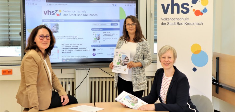 Foto: Das Team der vhs Bad Kreuznach freut sich auf das neue Programm, v.l.: Geschäftsführerin Anja Zimmer und die Mitarbeiterinnen Angelika Jost und Dorothee Mennerich.