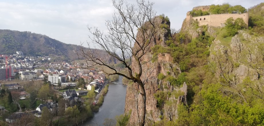 Großes Foto ganz oben: Der Rheingrafenstein mit der gleichnamigen Burgruine