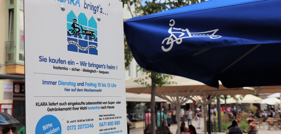Ab Freitag, 8. Januar, ist der KLARA-Stand auf dem Kornmarkt wieder jeden Freitag und Dienstag zwischen 10 und zirka 13 Uhr besetzt. Kundinnen und Kunden können ihren Einkauf am Stand abgeben oder in einem anderen Geschäft oder Supermarkt deponieren. Diese werden dann von den Ehrenamtlichen mit dem Lastenrad kostenfrei nach Hause transportiert.