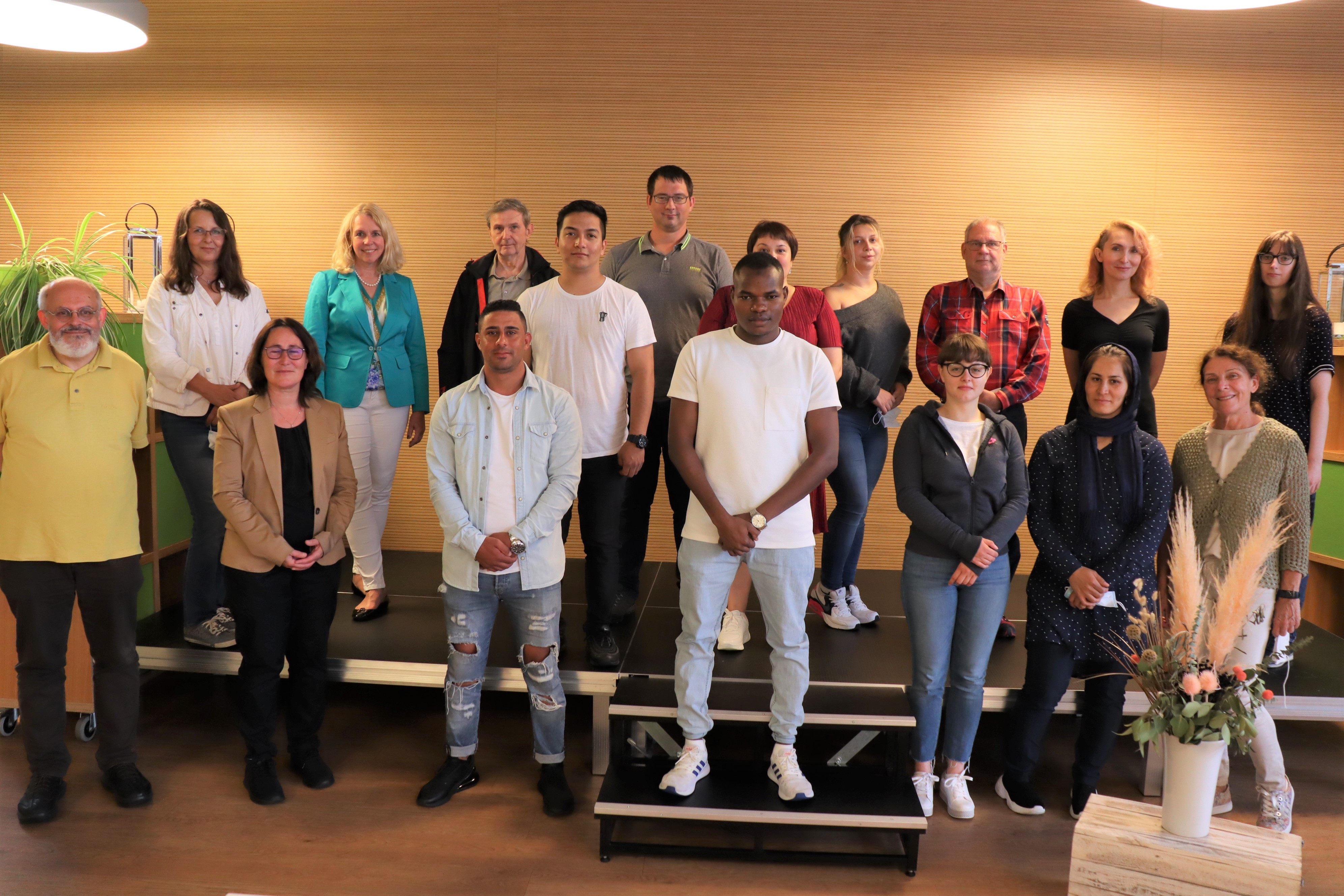 Sie paukten Deutsch, Mathematik, Sozialkunde, Erdkunde und Geschichte, jetzt haben sie die Prüfungen bestanden: Luisa Brommer, Ralf Fischer, Madeleine Frings, Patrizia Gruber, Diana Igers, Ishak Al Rasheed, Laila Qasemi, Anastasia Romanenko, Lukas Stephan, Mostafa Tajmir und Samir Zoiaidi nahmen mit …