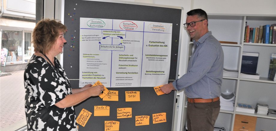 Die Quartiersarbeit im Fördergebiet „Lebendige Zentren - Aktive Stadt“ unterteilt sich fortan in drei Bereiche: Sicherheit, Ordnung und Sauberkeit (Oliver Kelm), Soziales und Kulturelles (Katharina Becker) sowie Städtebau und Verwaltung (Katharina Blagojevic). Zu den Aufgaben Oliver Kelms wird – in Zusammenarbeit mit dem Ordnungsamt – die Entwicklung eines Sicherheits- und Ordnungskonzepts für die Neustadt, das Leerstandmanagement mit der aktiven Vernetzung der Akteure und der Steuerung von Arbeitskreisen sowie der Aufbau präventiver Strukturen gehören.