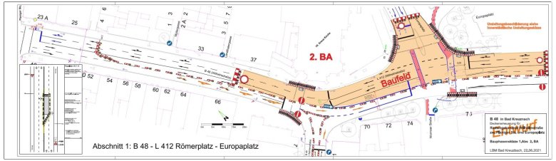 - 2. Bauabschnitt: Freitag, 25. Juni, 18 Uhr, bis Montag, 28. Juni, 5 Uhr. Die Zufahrt zum Europaplatz wird voll gesperrt, die Zufahrt zur Salinenstraße wird an diesem Wochenende möglich sein.