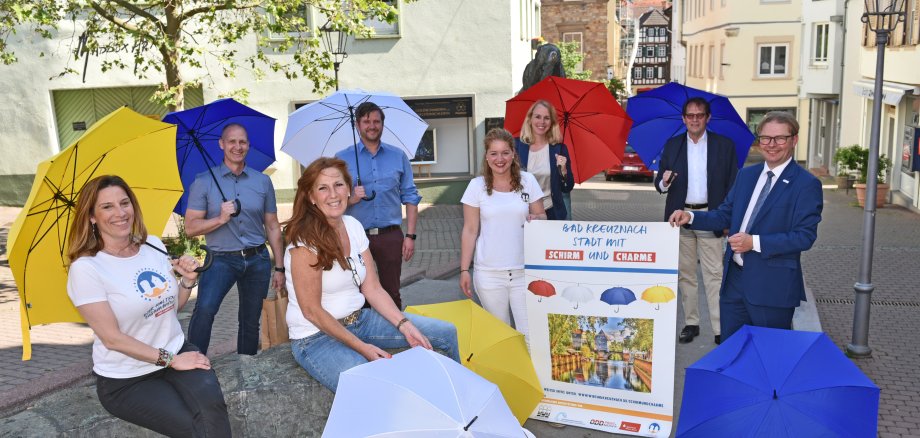 Stadtwerke-Geschäftsführer Christoph Nath: „Wir sorgen für Bad Kreuznach und beteiligen uns gerne an solchen Aktionen, die unsere Stadt noch attraktiver machen." Auch Peter Scholten, Vorstandsvorsitzender der Sparkasse Rhein-Nahe, unterstützt die Aktion: „Die bunten Schirme werden schöne Farbtupfer in die Stadt bringen und bestimmt auf große Aufmerksamkeit bei kleinen und großen Besuchern stoßen.“