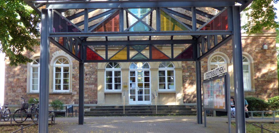 Foto: Der Haupteingang der Stadtbibliothek Bad Kreuznach in der Kreuzstraße
