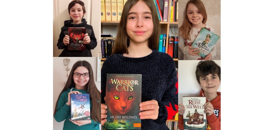 Foto: So sehen Sieger aus: Lucie Mathias (Mitte), Alexander Mindnich (l.o.), Ida Birkmann (l.u.), Marie Bayer (r.o.), Noah Walter (r.u.). Auf dem Foto fehlt Angelina Rossel.