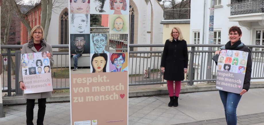 Die Kunstwerke sind dort bis Ende des Monats zu sehen. Parallel dazu wurden Plakate entworfen. Oberbürgermeisterin Dr. Heike Kaster-Meurer, Renate Ziegler, Leiterin der Kunstwerkstatt Bad Kreuznach, und Vanessa Berg vom Jugend- und Kooperationszentrum „Die Mühle“ haben die Aktion stellvertretend für „Kreuznach für Vielfalt“ präsentiert.