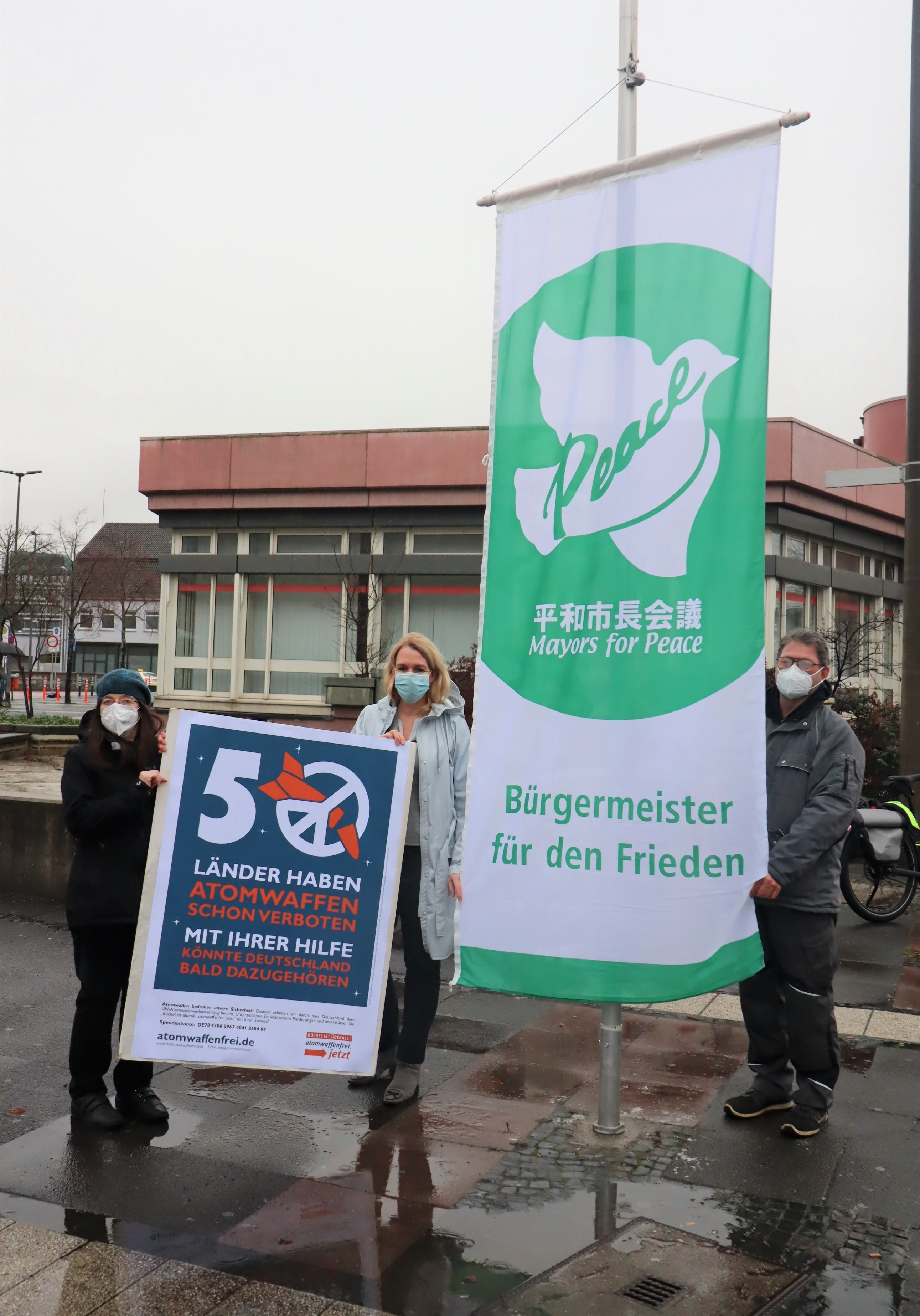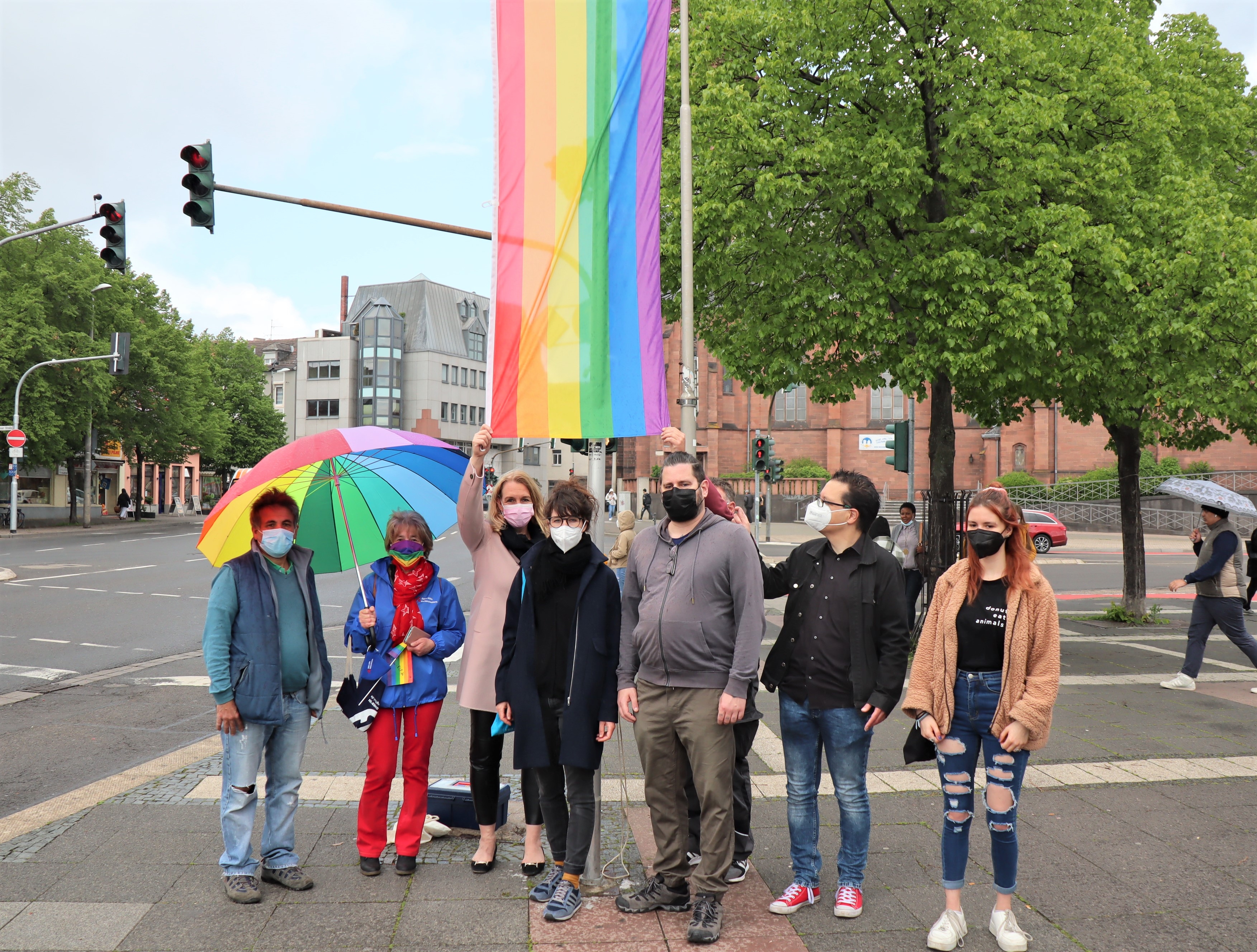 Zum Internationalen Tag gegen Homo-, Bi-, Inter- und TransphobieStadtverwaltung und Queer Treff hissen erstmals die Regenbogenfahne
