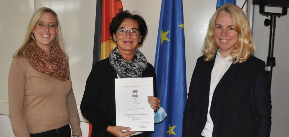 Foto: Kitaleiterin Miriam Welten, Elisabeth Chwalinski und Oberbürgermeisterin Dr. Heike Kaster-Meurer