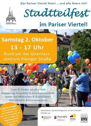 Auf dem Fest gilt die 3G-Regel: Teilnehmen darf, wer getestet, geimpft oder genesen ist. Die Organisatoren des Quartiersmanagements Soziale Stadt Pariser Viertel freuen sich über eine rege Teilnahme.