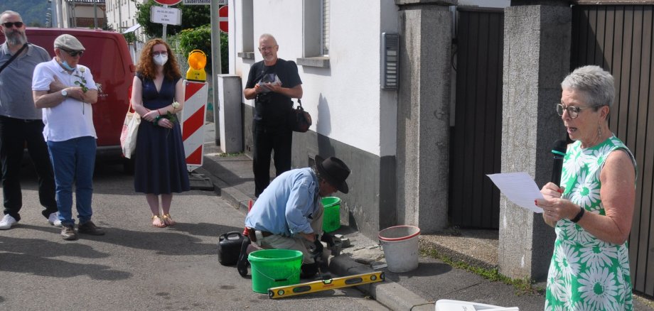 Großes Foto oben: Hazel Chowcat war aus England zur Stolpersteinverlegung für die Familie Heymann angereist.