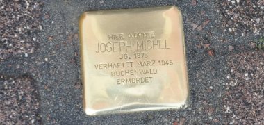 Joseph Michels Stolperstein liegt vor dessen einstigen Geschäftshaus in der Mannheimer Straße 4. Joseph Richard Michel (1876-1945) stammt aus einer weitverzweigten jüdischen Familie. Sein Vater Leopold Michel (1847-1921) führte ein Textilgeschäft in der Mannheimer Straße 4. Joseph Richard Michel war von 1928 bis 1933 Mitglied des Bad Kreuznacher Stadtrates und mit Bertha verheiratet, der Tochter von Heinrich Deecke, Inhaber des Geschäftes (Papier, Schreibwaren, Lotto) am Eiermarkt 4. Er wurde kurz vor Ende des Zweiten Weltkrieges in das KZ Buchenwald deportiert. Dort verliert sich seine Spur. Ein Mithäftling berichtete später der Familie, dass er ihn nicht überreden konnte, mit ihm aus dem Deportationszug nach Buchenwald zu fliehen. „Ich hätte ihn gerne kennengelernt. Er war ein liebenswerter, toleranter Mensch und ein Patriot. Ich bin ihm dankbar, dass ich über ihn die Nachkommen der Michels in Israel kennenlernen durfte“, sagte Ulrike Michel, die die Familiengeschichte ihres Mannes erarbeitete. „Das Auge und das Herz sollen über die Stolpersteine stolpern und so zum Nachdenken und Erinnern anregen. Sie sollen dazu beitragen, dass die Opfer der NS-Zeit nicht vergessen werden“, trugen Schülerinnen und Schüler der IGS Sophie Sondhelm vor.