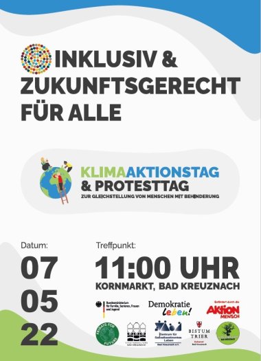 Der Klimaaktionstag und der Protesttag für Menschen mit Behinderung wurde initiiert von der Klimagemeinschaft Bad Kreuznach und dem Zentrum für Selbstbestimmtes Leben (ZSL) Bad Kreuznach und wird gemeinsam mit der Stadtverwaltung, Fridays for Future Bad Kreuznach und dem Dekanat Bad Kreuznach ausgerichtet.