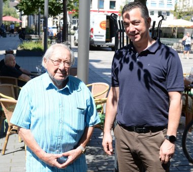 Beim abschließenden Mittagessen vor Karins Bistro auf dem Kornmarkt gab es einen Überraschungsgast. Oberbürgermeister Emanuel Letz (Foto) nutzte den Besuch, um den Ehrenvorsitzenden der jüdischen Gemeinde Bad Kreuznach kennenzulernen. Die beiden freuen sich auf ein Wiedersehen bei der Jahrmarktseröffnung am Freitag, 19. August.