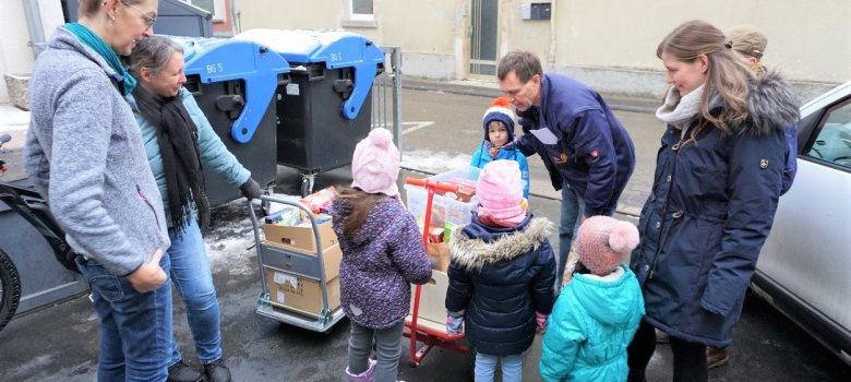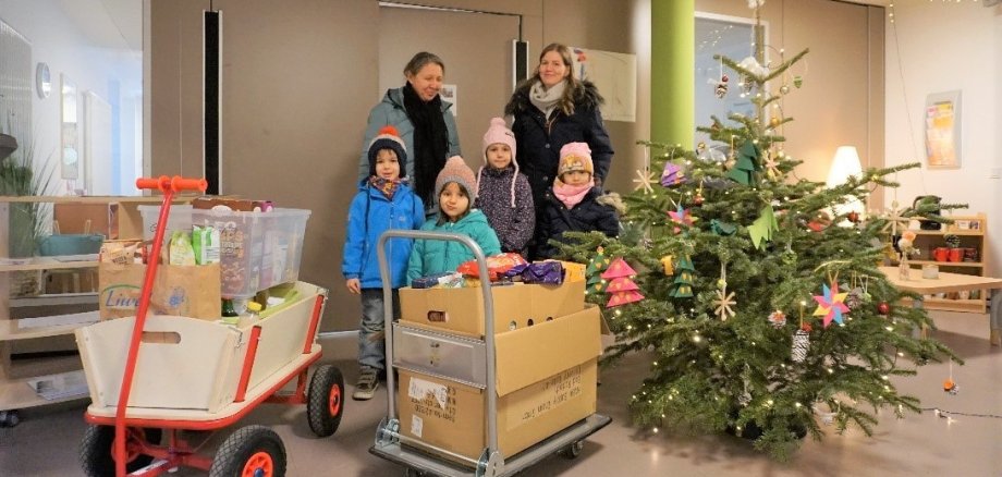 Bei der Spendenaktion kamen fünf große Kisten und Tüten zusammen, vollgepackt mit Kaffee, Milch und Säften über Nudeln, Mehl und Reis bis hin zu leckeren Weihnachtsplätzchen und Kinderpunsch. Die Kita Jungstraße bedankt sich bei allen für die Mithilfe und besonders fürs Anpacken bei den Kindern David, Klara, Rajna und Yara.