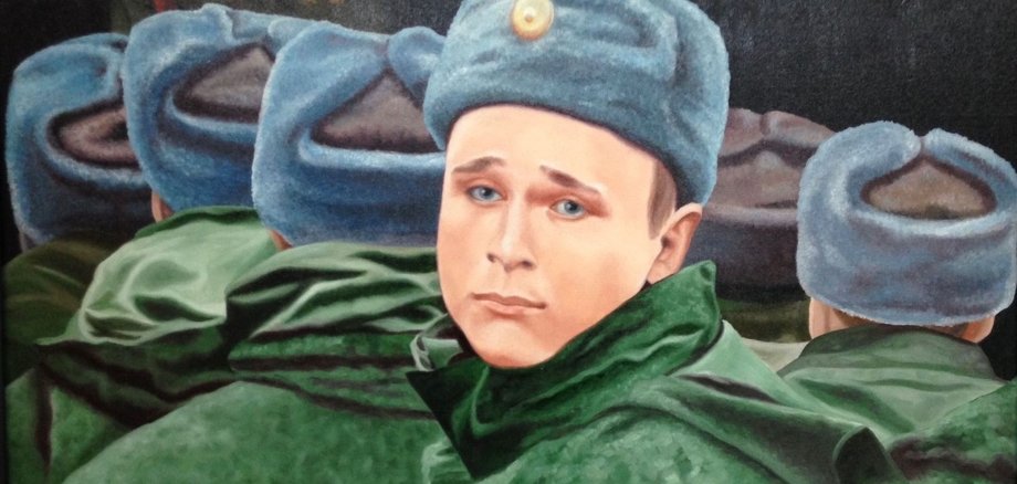 Von erschreckender Aktualität ist das Gemälde mit dem Titel Angst in Verbindung mit dem Gedicht Soldatenmütter. Beides entstand auf der Höhe des Ukraine-Russland-Konflikts im Jahr 2014. Es basiert auf einer wahren Begebenheit. In einer Reportage wurde eine russische Mutter vorgestellt, die, wie viele andere Mütter, glaubte, ihr Sohn sei in einem Trainingslager auf russischem Boden. Doch sie erkannte ihn in einer Fernsehsendung. Er war seiner Uniformkennzeichen beraubt und in Kampfhandlungen in der Ukraine verwickelt. Die seit 2004 bestehende Vereinte Volkspartei der Soldatenmütter, die vehement gegen das „Verheizen ihrer Söhne“ kämpft, behauptet, dass während der Ukrainekrise 2014 15000 russische Soldaten zum Einsatz kamen. Putins aktueller Krieg ist ein makabres Déjà-Vu.