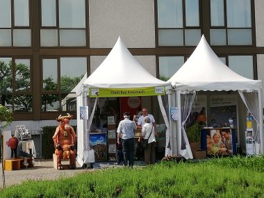 Hier gab es ansonsten rege Nachfrage nach Wanderkarten im Wandergebiet 3x3 Salinental. Der Stadt Bad Kreuznach fügte sich ein in eine breite Themenpalette des Kreises mit den Schwerpunkten Aktiv in der Natur, Genussregion (SooNahe), Kultur (PuK und Freilichtmuseum) und Gesundheit (Radonstollen). Dazu gab es ein Gewinnspiel. Auch ein innovatives Gartenbauprojekt fand Raum und ein Weinstand rundete das Ensemble ab.