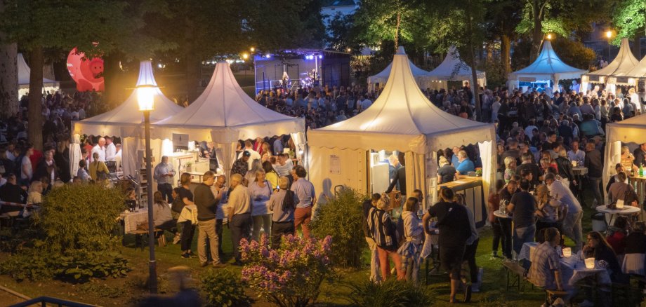 „Wir freuen uns alle sehr, dass diese gelungene Veranstaltung nun zum dritten Mal im Kurpark stattfindet“, so Gernot Mayer vom Weinhof Mayer. Wein und Geselligkeit gehören natürlich zusammen. Dafür sorgt auch das Ambiente im Kurpark, dessen Bäume wieder abends illuminiert werden.