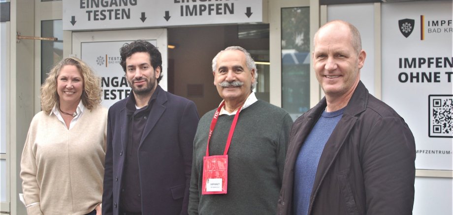 Foto: Den Betreibern des Impfzentrums am Bahnhof, Dr. Felix Mahfoud (3.v.l.) und David Noack (2.v.l.), statteten Landrätin Bettina Dickes und der städtische Beigeordnete Markus Schlosser einen Besuch ab.