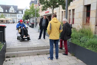 Eine weitere Problemstelle ist die kleine Treppe, die vom Kornmarkt zur Rossstraße führt. Diese wird gerade im Dunklen von beeinträchtigen Menschen gerne übersehen, ein Rollstuhlfahrerin ist dort gestürzt. Hinweisschilder und eine Treppenbeleuchtung hat die Stadt bereits angebracht. Da die Treppe in der Vergangenheit beschädigt worden war, wird sie in den kommenden Wochen erneuert und die Stufen in diesem Zusammenhang mit neuen Kontrastkanten ausgestattet. Weitere taktile Bodenelemente vor der Treppe sind denkbar.