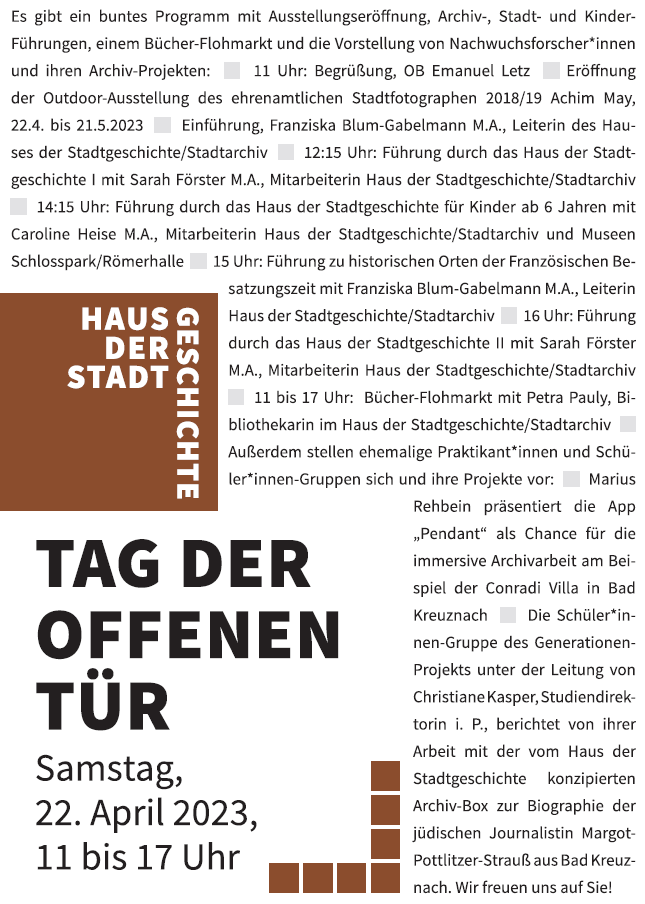 Am Donnerstag, 4. Mai, um 19 Uhr laden der Stadtelternausschuss Bad Kreuznach und Oberbürgermeister Emanuel Letz alle Bad Kreuznacher Eltern ins Jugendzentrum „Die Mühle“, Mühlenstraße 25, ein. Das Thema der Auftaktveranstaltung zum offenen Austausch von Eltern, Stadtpolitik und -verwaltung sind die …