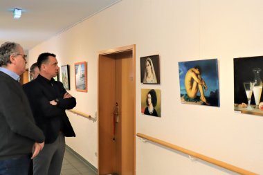 Im Foyer des Kurstifts werden rund 35 Zeichnungen und Malereien gezeigt, die während der Kunstkurse an der Malschule in den vergangenen Jahren entstanden sind. Die Ausstellung möchte zeigen, zu welchen außergewöhnlichen Leistungen Freizeitkünstler in der Lage sind. Mit großer Geduld und viel Freude sind zahlreiche schöne Arbeiten entstanden, von deren künstlerischer Qualität sich der Oberbürgermeister bei seinem Rundgang beeindruckt zeigte.