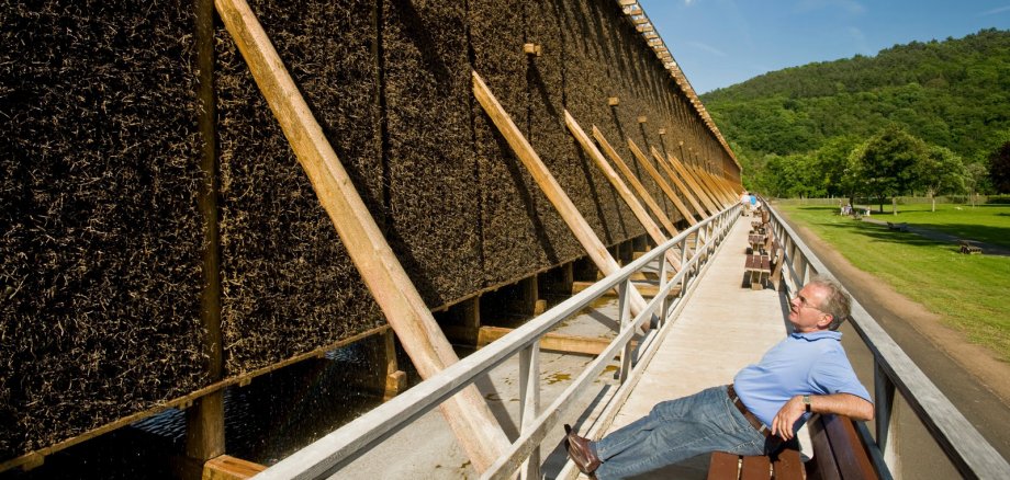 Es gibt noch zwei weitere Baustellen im Salinental. Die GuT plant in den nächsten Jahren die Renovierung der größten Berieselungsanlage – dem Gradierwerk am Stadion – und hat in diesem Jahr bereits den ersten Bauabschnitt begonnen. Neben dem Austausch von Latten und Dornen auf etwa 100 Metern Länge ist eine Dachsanierung erforderlich. Kostenpunkt: 160.000 Euro.