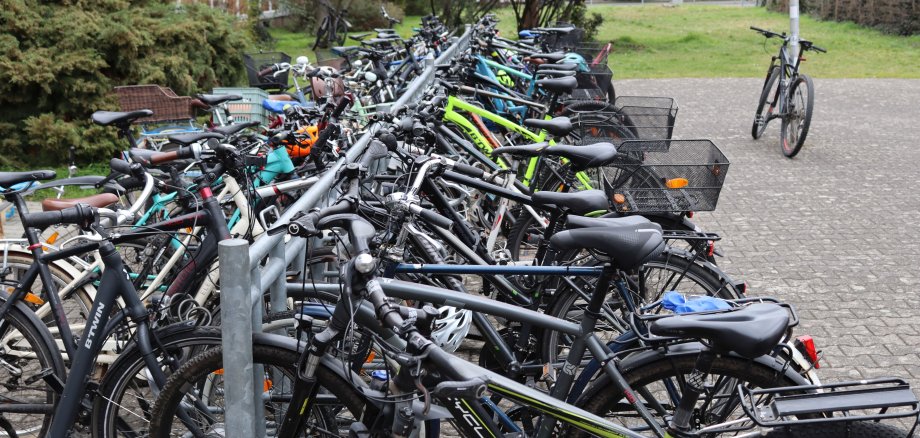 Foto: Der Radabstellplatz am Lina-Hilger-Gymnasium. Die Schule hat wieder sehr viele Teilnehmer für das STADTRADELN gemeldet.