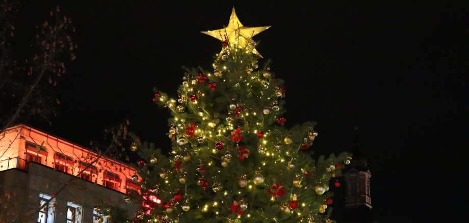 Archivfoto (2021): In den vergangenen Jahren war der Weihnachtsbaum auf dem Kornmarkt dank vieler Unterstützer ein dekoratives Highlight.