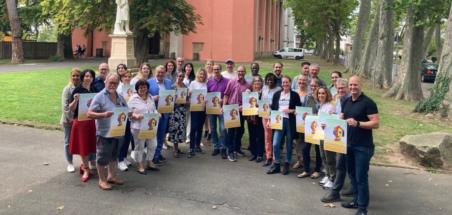 Foto: Werben für die Interkulturellen Wochen 2023: Die AG Interkulturelle Wochen mit Sozialdezernent Markus Schlosser vor der Pauluskirche. Foto: Isabel Gemperlein
