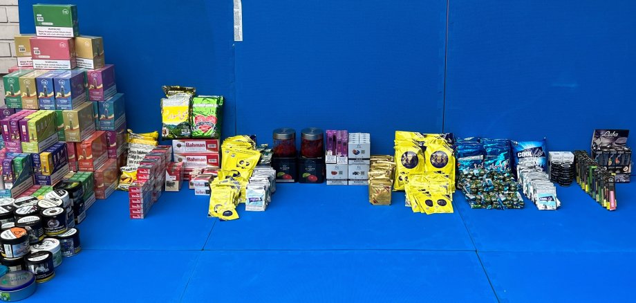 Foto: Die durch den Kommunalen Vollzug sichergestellten Tabakwaren und Shisha-Bedarf