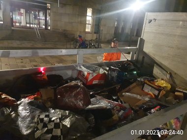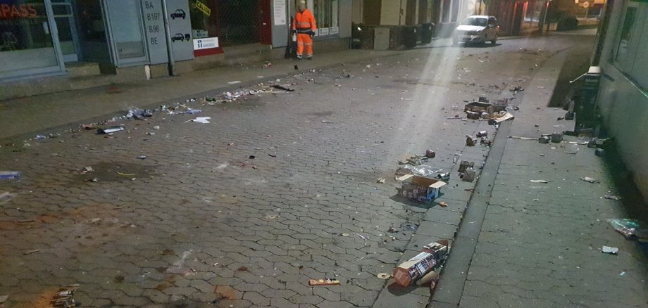 Was die Kehrmaschinen nicht aufnehmen konnten, mussten die Bauhofmänner mit der Hand erledigen, so zum Beispiel die schweren Böller-Batterien und die Raketenstangen.