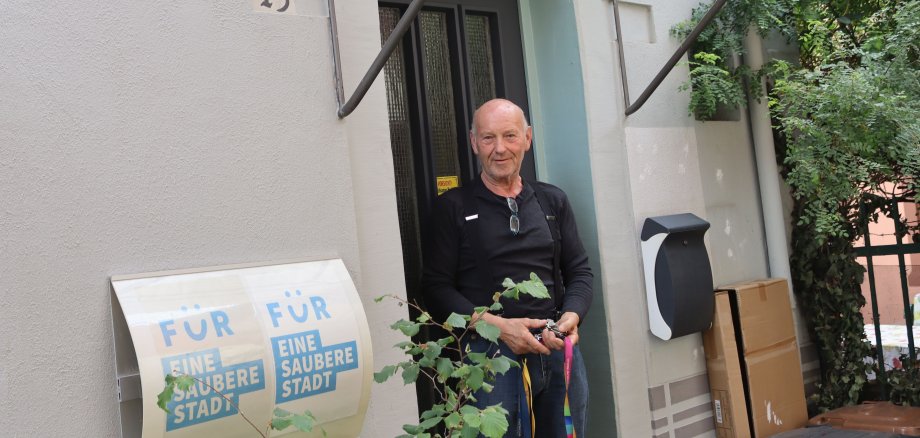 Foto: Heiko Heblich vor seinem Haus in der Magister-Faust-Gasse (Milchgässchen).