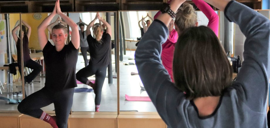 Foto: Yoga ist eines der Angebote der Gesundheitsmanagerin Rebecca Schamari an die Mitarbeiter*innen der Stadtverwaltung.