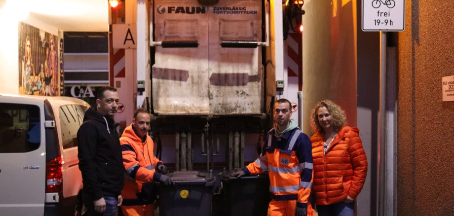 Großes Foto: Bei ihrer Innenstadttour wurde die AWB-Müllabfuhr von Bettina Dickes und Emanuel Letz begleitet.